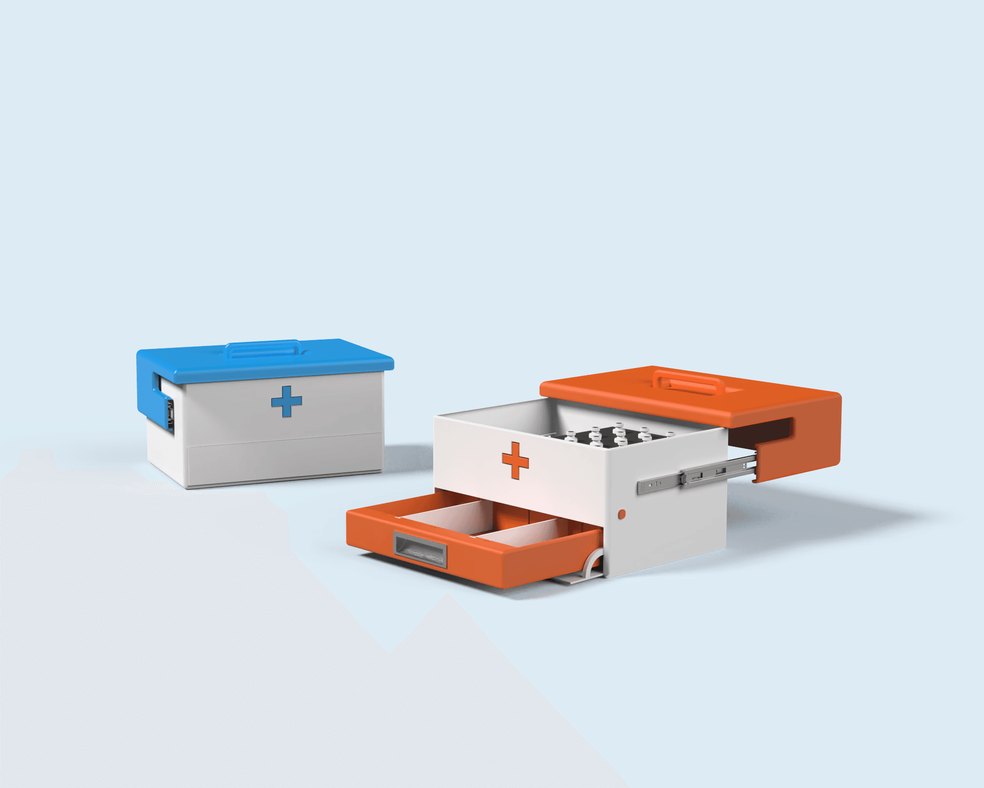 Industrial product design for compact medical unit.